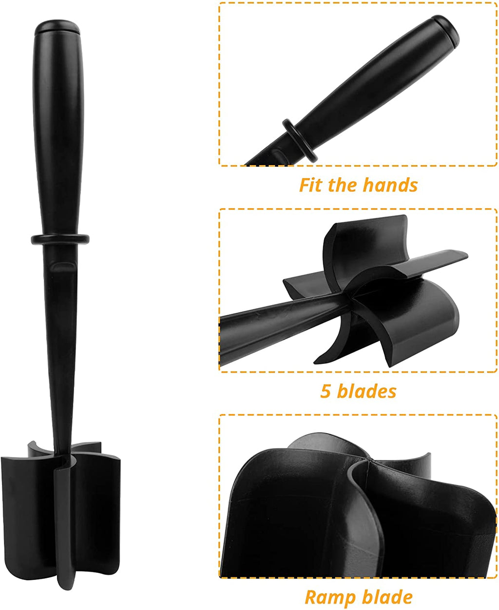 EASY TO CHOP & STIR: The 5 wide beveled pinwheel blades make this meat chopper utensil easily chop and crumble food, easily reach each corner of the container, an ideal tool for you to cook delicious foods including potatoes, yams, pumpkin, squash, rutabagas, turnips, parsnips, carrots, apples, bananas, and more.